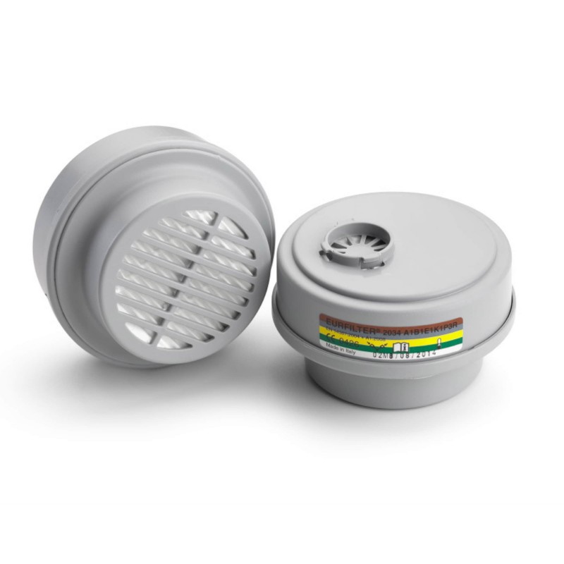 Filtre combiné avec connexion baïonnette, protection A1B1E1K1P3 contre les gaz et vapeurs organiques dont le point d’ébullition est supérieur à 65°C, les poussières, brouillards et fumées toxiques fines. Connexion rapide à baïonnette, S’utilise uniquement à la paire avec les masques ETNA & PANAREA TWIN Cartouche en ABS, matériaux de filtration en papier non tissé plié