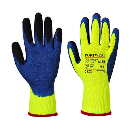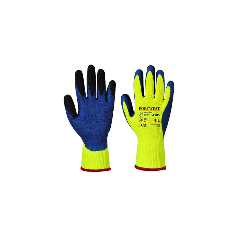 Le A185 est un nouveau gant qui utilise les techniques les plus récentes pour produire un gant haut de gamme et durable. Une couche supplémentaire de latex adhérisé est ajoutée aux bouts des doigts qui sont exposés à l'usure, ce qui améliore l'adhérence et la durée de vie, tout en absorbant la fatigue de la main. La doublure thermique augmente l'isolation au froid.