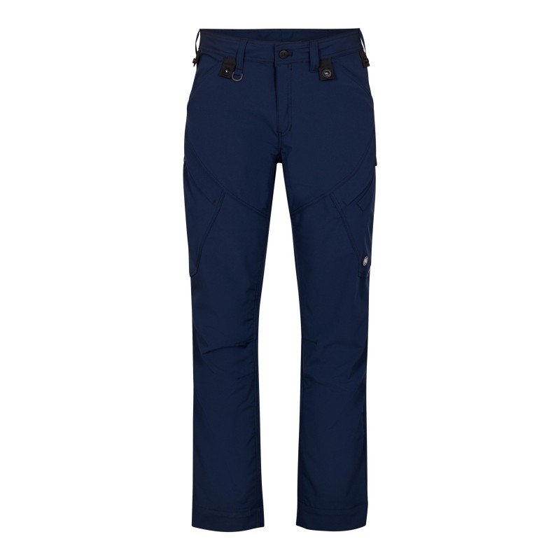 Pantalon de service fonctionnel avec de nombreux détails fonctionnels. Le tissu est agréable et extensible dans 4 sens pour un meilleur ajustement et une plus grande liberté de mouvement, et l'intérieur est en coton pour un confort maximal. Le pantalon est doté de genoux en forme ergonomique. Deux grandes poches obliques sur le devant. Deux poches arrières. Deux poches cuisse que l'on peut fermer avec une fermeture à glissière. Sur le côté gauche, la poche cuisse a un compartiment supplémentaire pour téléphone portable. Sur le côté droit, la poche cuisse est à soufflet pour plus de largeur et d'un compartiment intérieure supplémentaire. Anneau en D avant pour le rangement de la carte d'identité, par exemple. Boutons pour un montage facile des poches pendantes. Le pantalon a un ourlet supplémentaire, qui est destiné à augmenter la longueur du pantalon pour une entrejambe supplémentaire. Si une seule couture est retirée, le pantalon a une longueur de jambe supplémentaire - et l’ourlet reste toujours cousu.