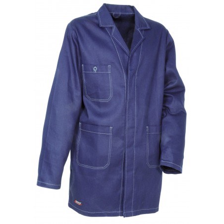 60 % coton 40 % polyester 315 gr/m² Fermée par pressions. Poches poitrine Poches côtés Poignets réglables Fente dos Merceries tout plastique